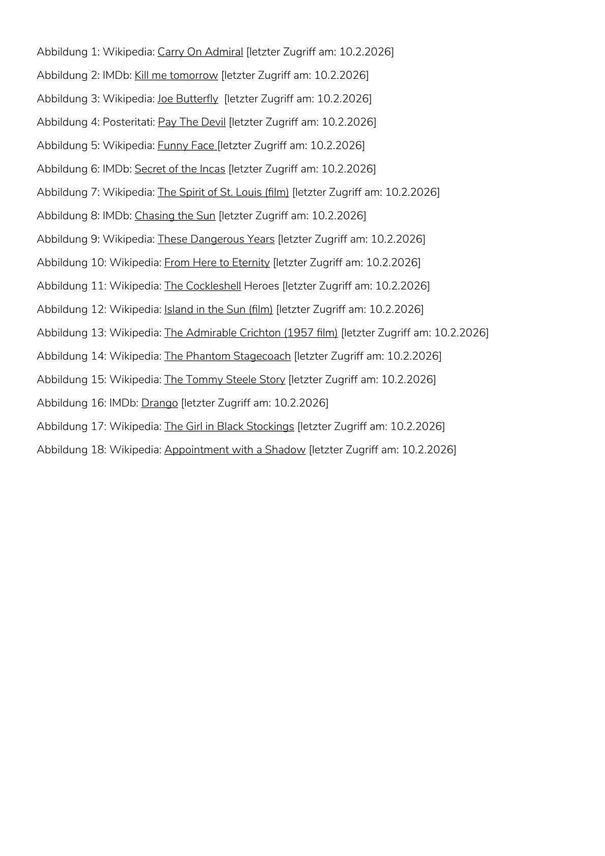 Der Tagebucheintrag vom 7. August, der gleich darauf folgt und nur aus einem Satz besteht („Ich fühle, ich beginne[,] ich selbst zu werden!“22) zeugt von einer Überwindung des Gefühlschaos der letzten Tage. Er ist jedoch von Barbara Frischmuth durchgestrichen. Danach geht es mit der Beschreibung von Erlebnissen weiter. Barbara Frischmuth besucht York – eine „der schönsten u. ältesten Städte Englands“23 –, geht mit einem Yorkshire „Jüngling“24 spazieren und verbringt ein Wochenende in Liverpool.25 Dort sieht sie zum ersten Mal einen großen Ozeanhafen und „schrecklich viele Matrosen u. muß sagen[,] sie gefielen mir sehr gut“26. Zurückgekommen in Huddersfield darf natürlich ein Kinobesuch nicht fehlen (From Here to Eternity (siehe Abb. 10) und Cockleshell Heroes (siehe Abb. 11)). Es ist nun schon Mitte August und Barbara Frischmuth besucht weitere Städte wie Blackpool, das für seine märchenhafte Beleuchtung von Gebäuden berühmt ist, Wetherby, um sich Rennpferde anzusehen, und Harrogate, wo sie und Mr. Toug mit dem reichen Besitzer jener Pferde zu Mittag essen.27 Danach steht wieder ein Kinobesuch auf dem Programm und Barbara Frischmuth sieht den berühmten Film Island in the Sun (siehe Abb. 12) mit Harry Belafonte („Ich weiß nicht, ob ich ihn hasse od. verehre!“28). Die nächsten drei Wochen ist sie dann mit Mr. Toug alleine, denn Mrs. Toug, die sie über ihre Zeit in England hinweg immer wieder mit neuem Gewand verwöhnt, fliegt nach Mallorca. So verbringt Barbara Frischmuth ein paar Tage in Scarborough29 bei Leslies Mutter, Schwester und Großmutter. Sie vergnügt sich mit Leslie bei verschiedenen Shows im Peasholmpark und auf dem Vergnügungsdampfer Coronia und geht in der eisigen Nordsee baden. Am 24. August sieht sie im Freilichttheater vor Ort das Weiße Rößl in englischer Fassung und empfindet die Trachten als „haarsträubend“30. Gegen Ende des Tagebuchs werden die Abstände zwischen den einzelnen Einträgen immer größer und Barbara Frischmuth genießt noch die letzten Wochen mit Ausflügen an die Ostküste Englands (z.B. Whitby) und gemütlichen Tagen zu Hause in Huddersfield mit Stricken und Fernsehen.31 Der letzte Eintrag stammt vom 10. September32, dann beendet sie ihre Tagebucheinträge mit folgendem Satz: „Eigentlich freue ich mich schon sehr auf Altaussee und die Schule.“33 Das englische Sommermärchen ist somit zu Ende.
