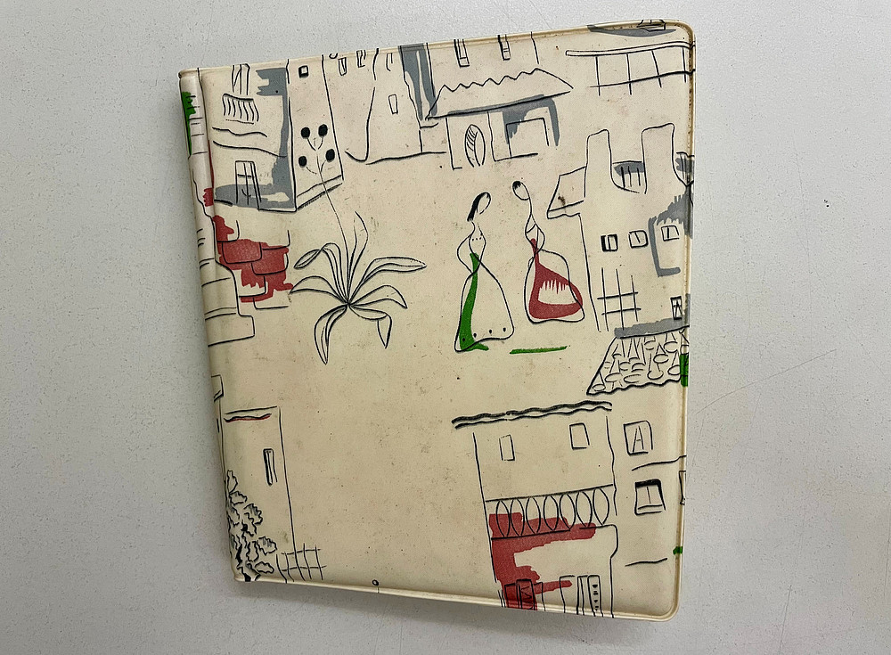 Notizbuch 15x16,5cm mit Häuser-Motiv „England 1957“ [Tagebuch England-Reise], dat. 30.7.-10.9.1957, 79 Bl., davon 34 Bl. beschr., Original, hs., beids. beschr. [mit eh. Zeichnungen, eingeklebten Eintrittskarten, Fotografien u. Postkarten] [eing. am 8.9.2025], FNI-Frischmuth-3.0.1.