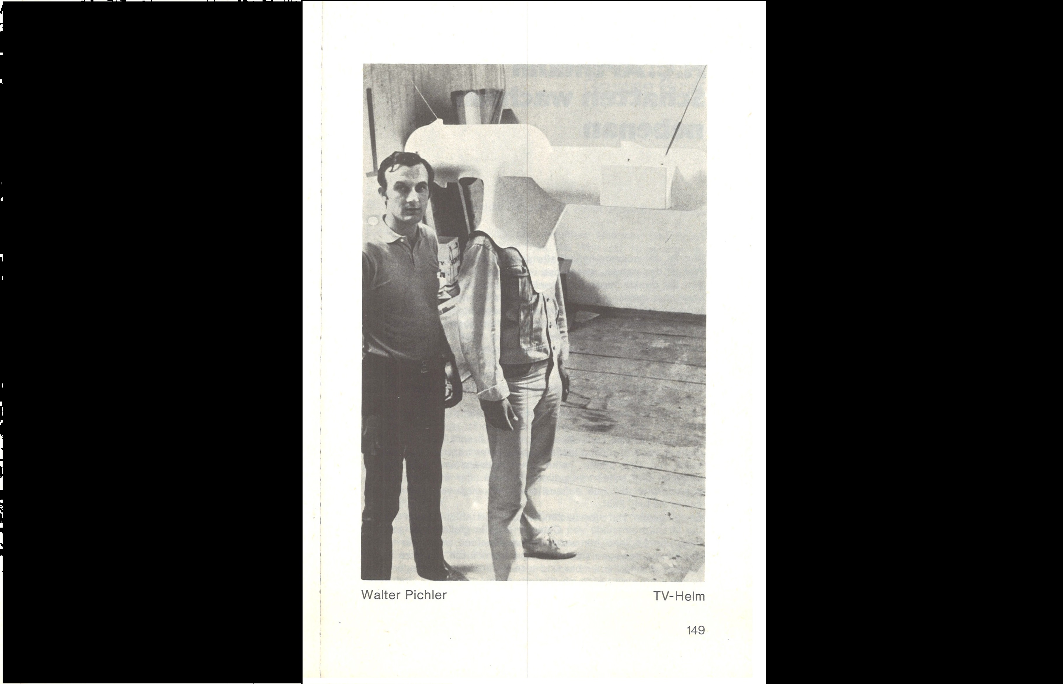 Ein erster Blick in das Buch zeigt, dass weder Kolleritsch noch Wiener mit Texten in der Anthologie vertreten sind, dass sich darin aber etliche andere Autor:innen finden, die mit Kolleritsch und den manuskripten in Verbindung stehen. So sind u.a. Texte von Ernst Jandl, Gerhard Rühm, Elfriede Jelinek, Barbara Frischmuth, Friederike Mayröcker und H. C. Artmann im Band veröffentlicht. Peter Pongratz und Walter Pichler steuern dazu noch (foto)grafisches Material bei: u.a. eine Dokumentation von Pichlers Installation TV-Helm, auf die sich auch Wieners Bioadapter bezieht. Zudem wird mit einer feinen Abänderung des ursprünglichen Arbeitstitels – der schließlich 1971 im Joseph Melzer Verlag in der Reihe Melzer Fiction herausgegebene Band heißt science & fiction – das damit bezeichnete Feld (bzw. die bezeichneten Felder) noch ausgeweitet.